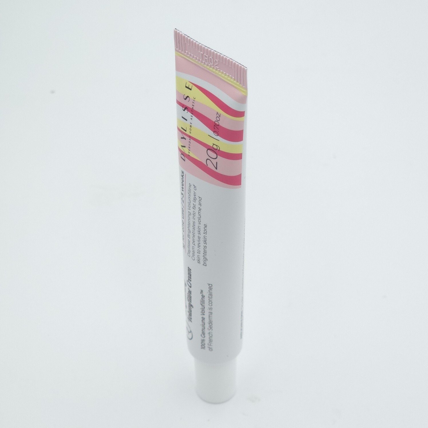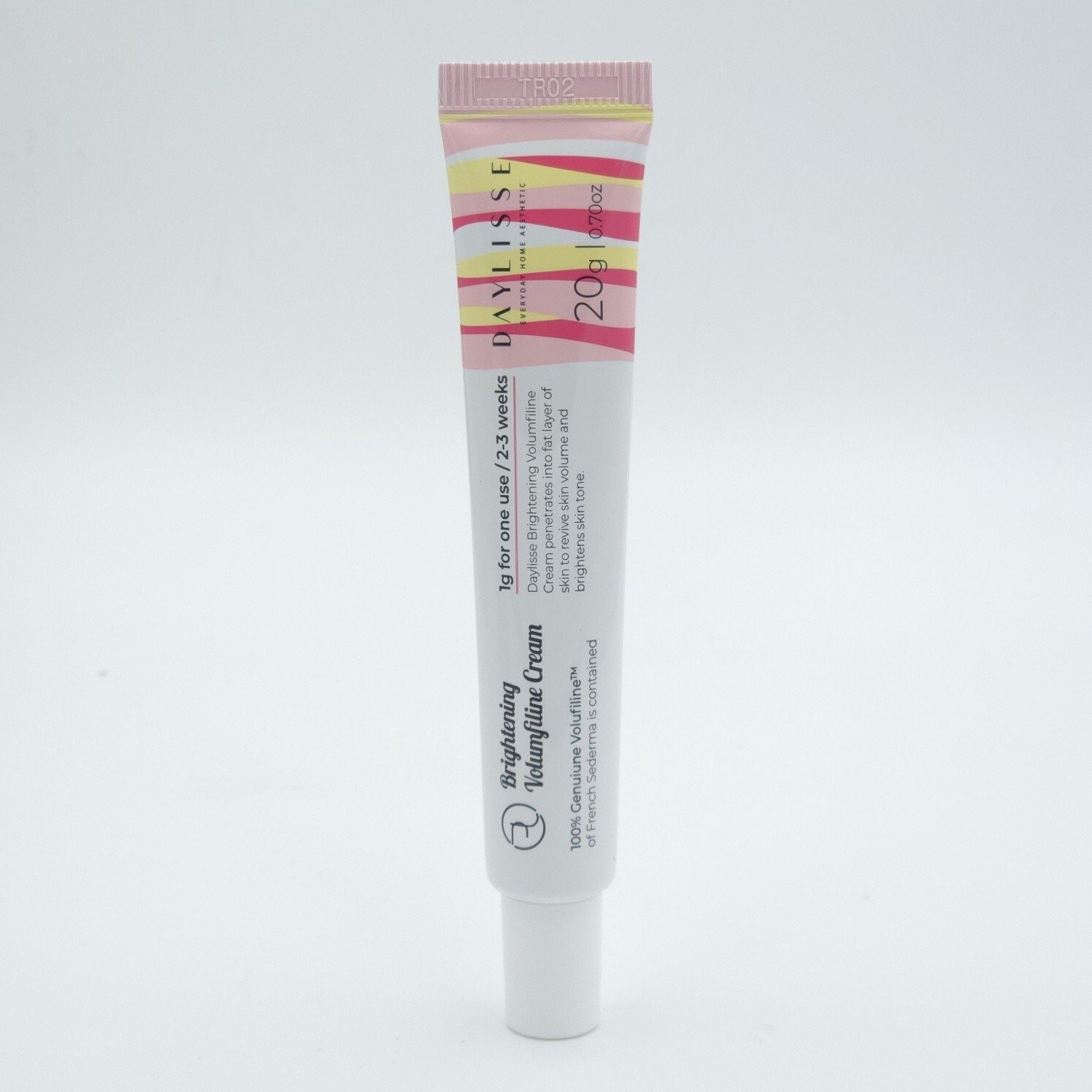 DAYLISSE Brightening Volumefiline Cream is a 20g moisturizing formula designed for daily use, enriched with hyaluronic acid, natural olive oil, adenosine, niacinamide, and 100% genuine Volufiline™. This cream targets dry skin to help reduce wrinkles and promote a youthful, radiant complexion. Crafted in Korea, it features a blend of Ceramide NP, 12 Complex Peptide, and other active ingredients for effective anti-aging benefits.